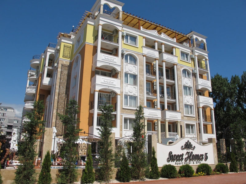 Продаются квартиры в Болгарии для круглогодичного проживания от застройщика. Жилой закрытый комплекс Sweet Homes 5, находится на  Солнечном берегу в тихом, спокойном районе всего в 400 метрах от моря. Модерное строительство комплекса в античном стиле привлекает к себе многих ценителей комфорта и уюта. Это храм красоты где Вы можете проживать как летом, так и зимой.
