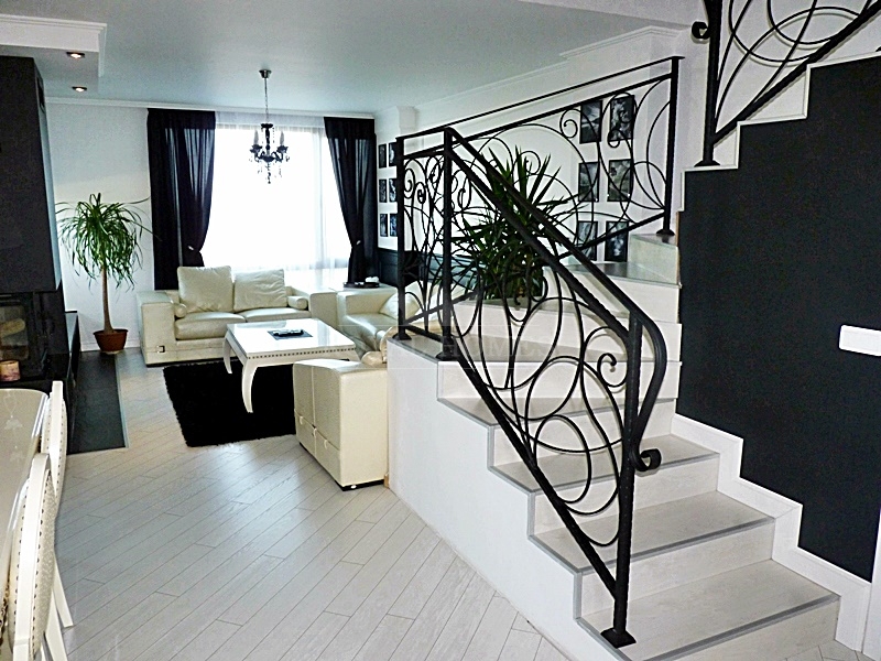 Таунхаус в Болгарии с высококачественной отделкой. Ванные комнаты полностью оборудованы сантехникой и душевыми кабинами. Для отопления дома изпольувается камин на дровах. Допольнительно установлены  два кондиционера зима/лето. Для мебелировки элитной недвижимости в Болгарии на море, выполнен дизайнерски проект - масивная мебель, коженые диваны, встроенная техника на кухне.