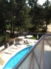 Около бассейна зона для шезлонгов и зонтов.