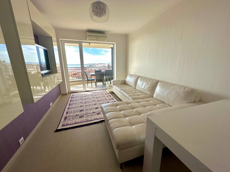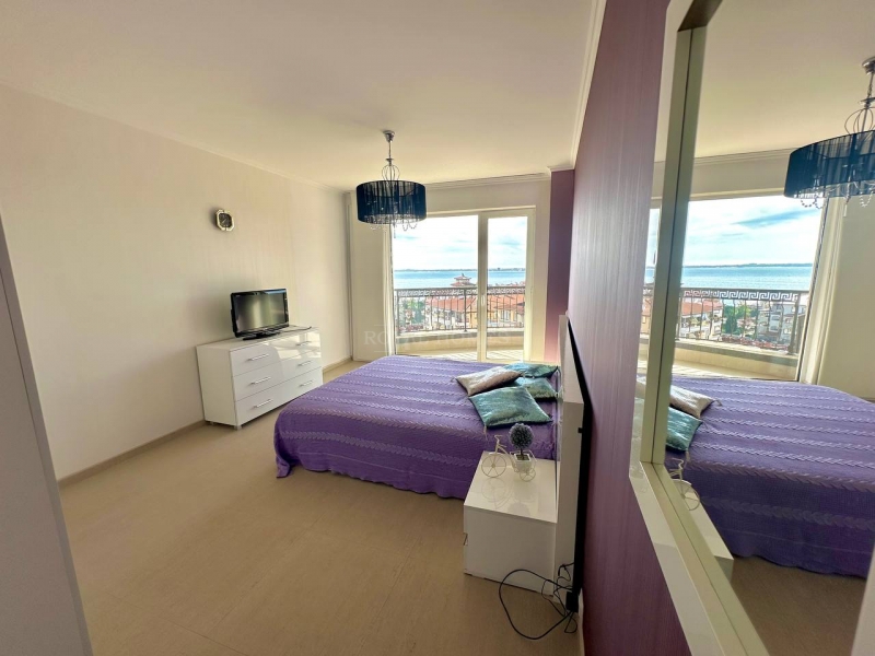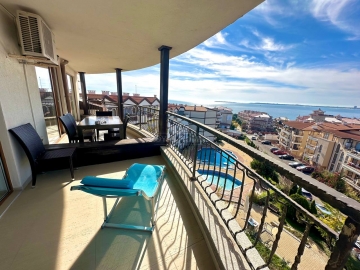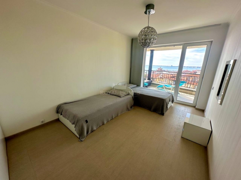 Свети Влас, всего в нескольких минутах от пляжа. Квартира расположена на 5-м, последнем этаже, что обеспечивает абсолютное чувство приватности и открывает безупречную панораму на море и бассейны комплекса.