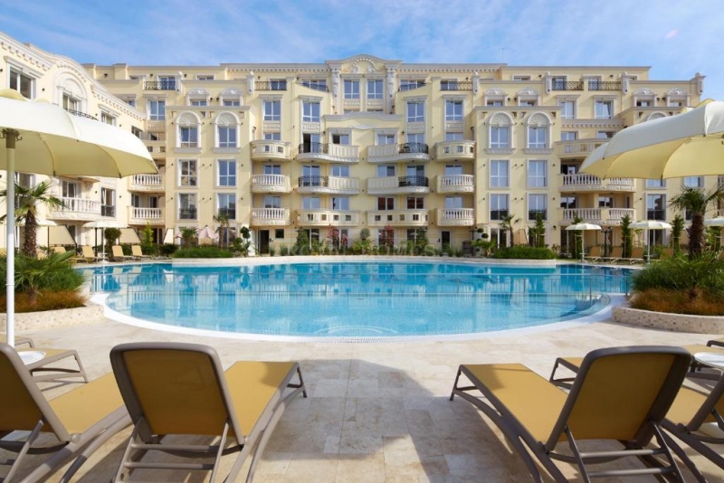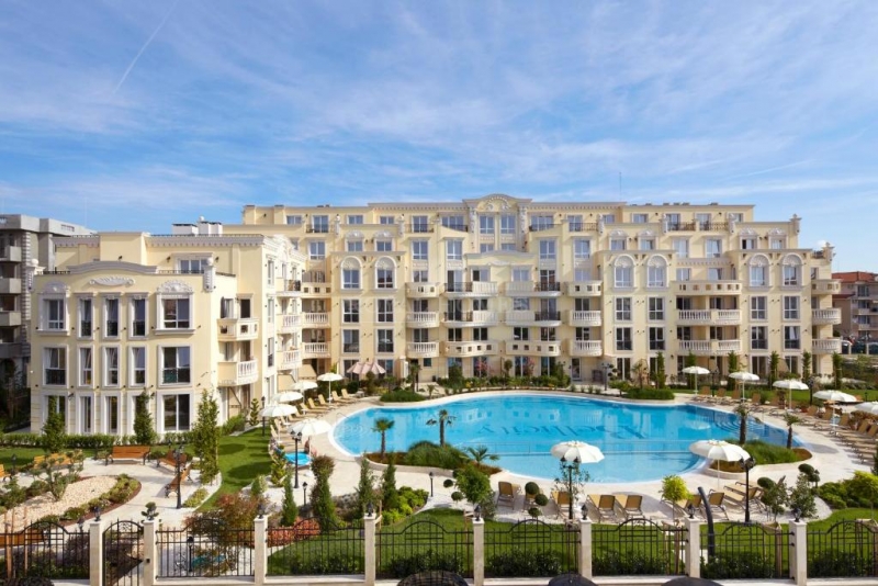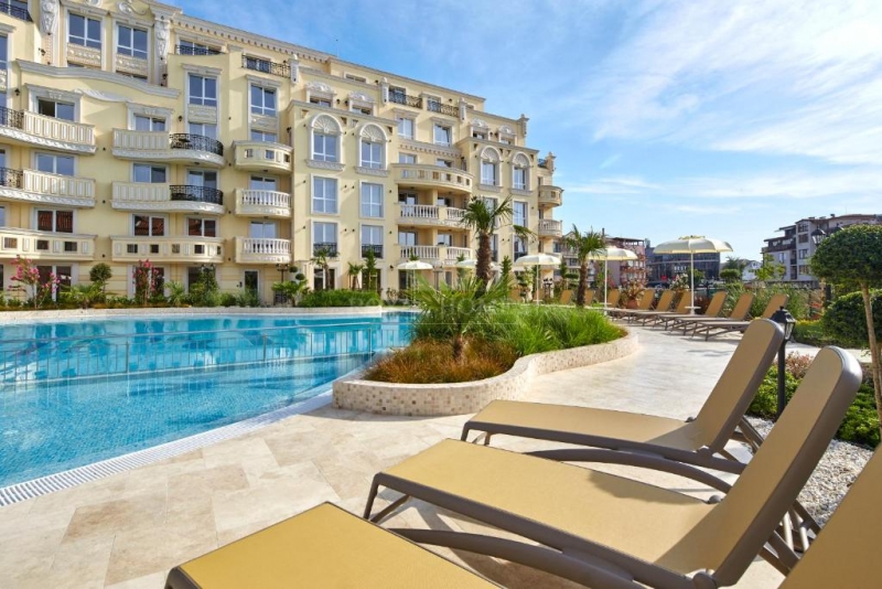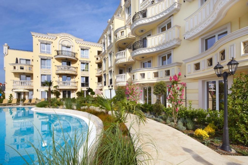 элитной недвижимости в Болгарии у моря, построенный в 2020 году. Архитектура здания выполнена в классическом европейском стиле с декоративными элементами и арочными балконами. Территория комплекса